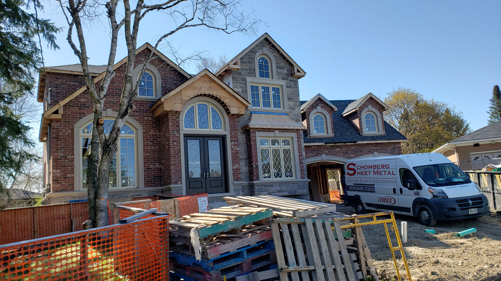 Creating a property that looks and feels larger than it actually is from a client’s perspective that meets the City of Markham’s by-law and zoning requirements is not easy. The innovative design starts with an optical illusion; from the front, the home appears to be a 1 ½ storey building, but the back of the property has 2 storeys. The highest point of the 2 storey roof is 100 feet from the curb, and it looks lower than it appears to be (creating another optical illusion or at least taking a moment to appreciate the attention to detail present in the design).